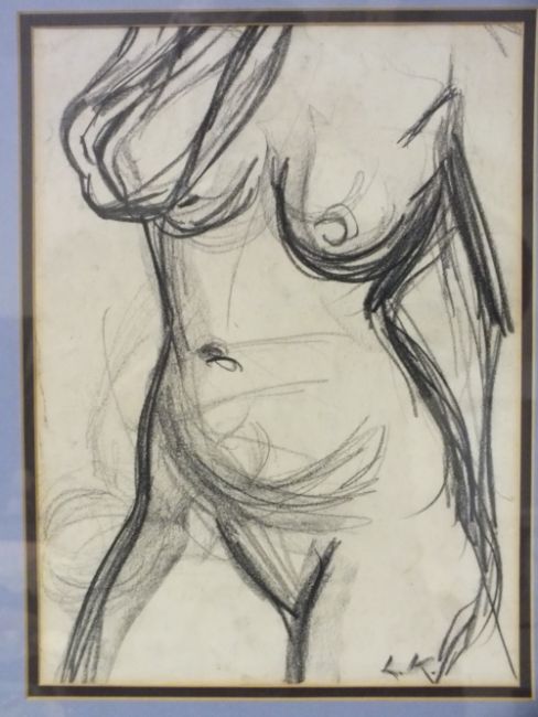 CIRCLE OF DAME LAURA KNIGHT (1877-1970). Female nude study, bears initials lower right, pencil on paper, framed and glazed, 31 x 23 cm