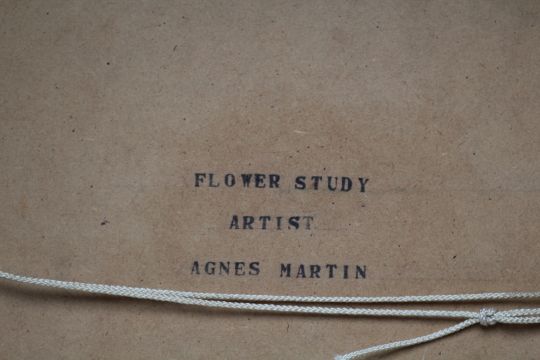 CIRCLE OF AGNES MARTIN (1912-2004). Impressionist still life study of flowers, see inscriptions verso, bears initials lower right, oil on card, framed and glazed, 11 x 8 cm