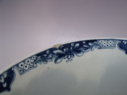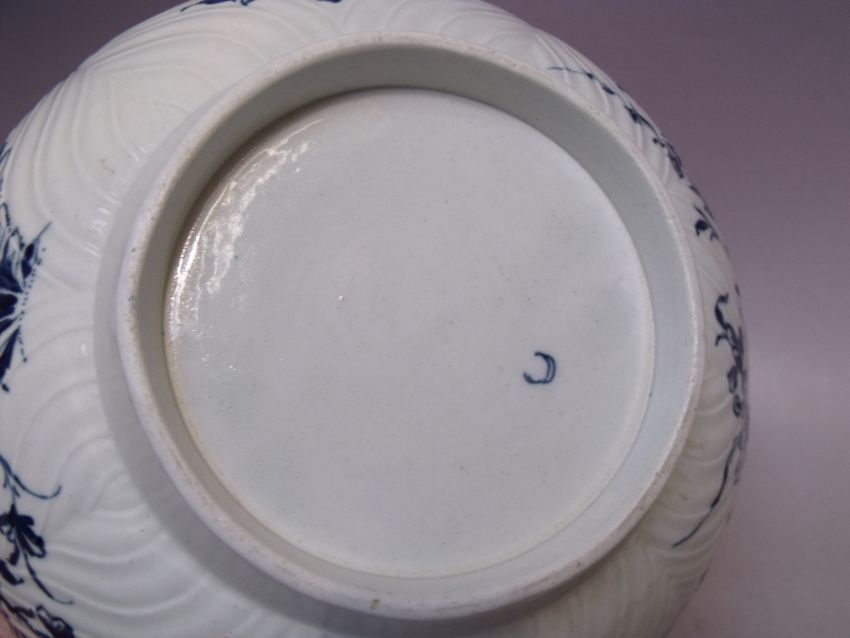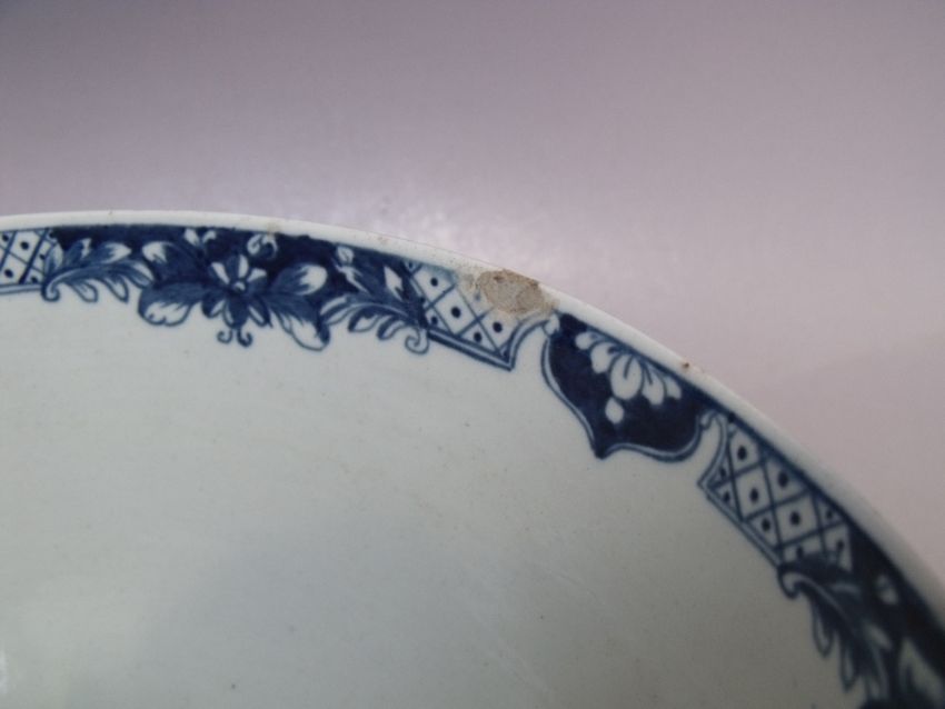 AN 18TH CENTURY WORCESTER BLUE AND WHITE FOOTED BOWL,crescent mark to base, Dia. 27.5, H 10 cm, S/D