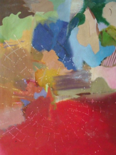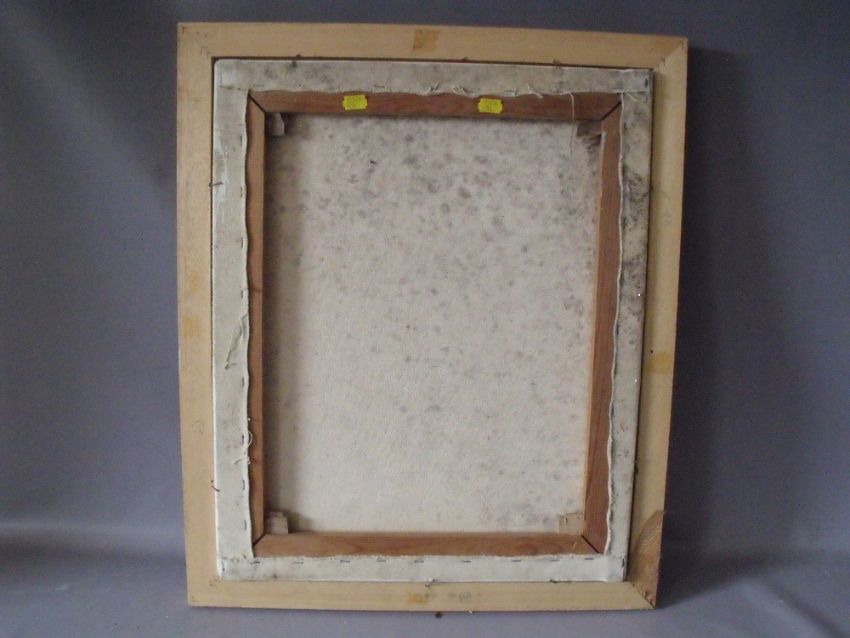 (XX). Abstract composition, indistinctly signed lower right, oil on canvas, framed, 54 x 44 cm