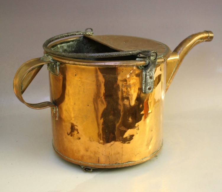 A LARGE ANTIQUE COPPER WATERING CAN, with iron loop handle, H 46 cm