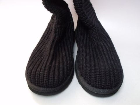 A PAIR OF 'CLASSIC CARDY KNIT' UGG BOOTS, in black, UK size 7.5