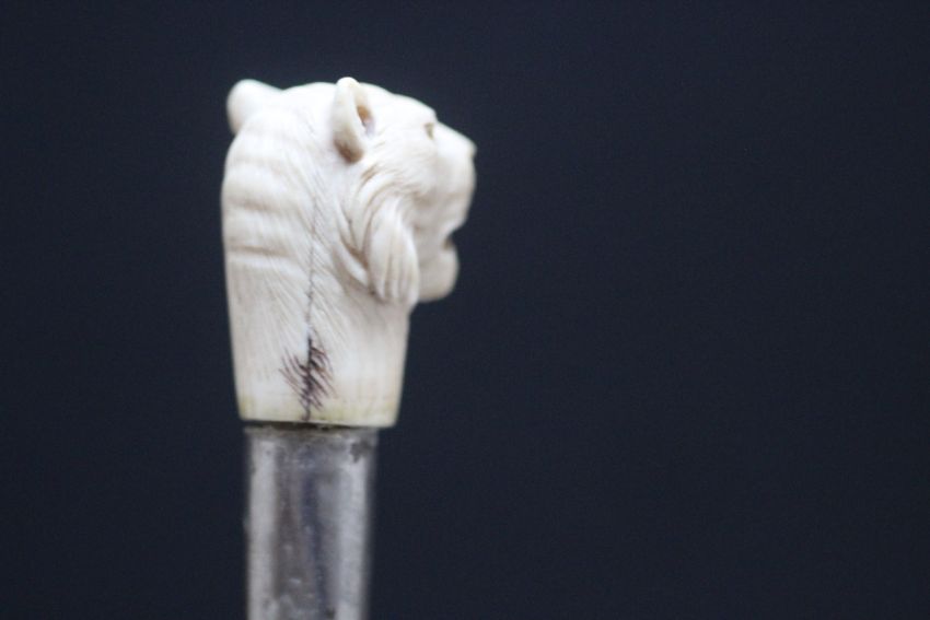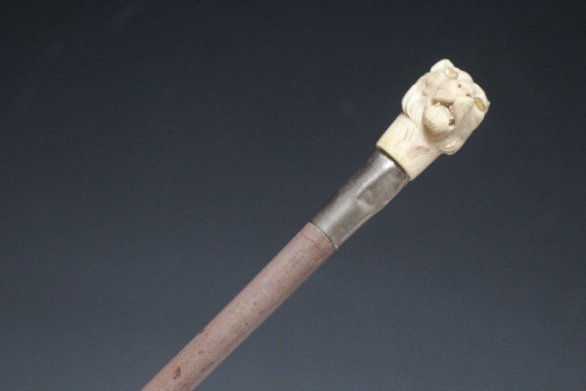 A JAPANESE STYLE IVORY TOPPED WALKING CANE IN THE FORM OF A TIGER, L 78 cm