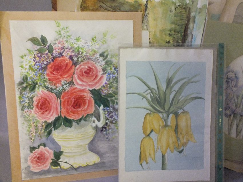 TWO FOLDERS CONTAINING VARIOUS WATERCOLOUR AND MIXED MEDIA DRAWINGS AND SKETCHES, to include landscapes, figurative studies, etchings, prints etc... (2)