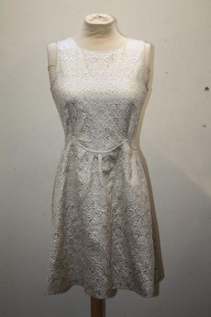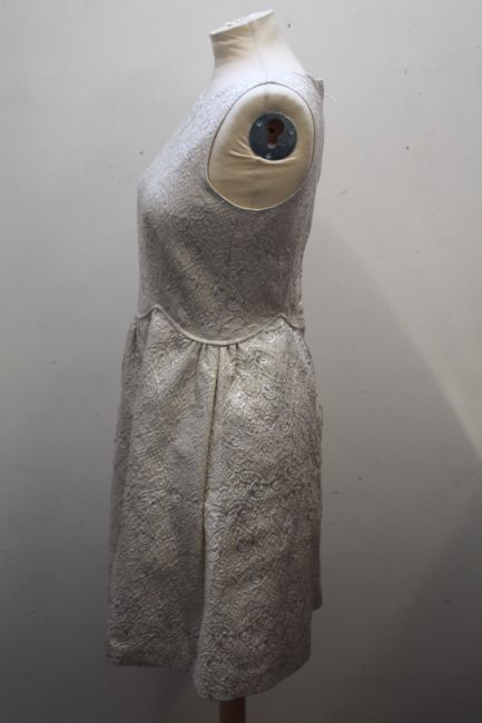A RED VALENTINO VINTAGE STYLE DRESS, cream ground with lurex detailing, lined to bodice, EU size 42