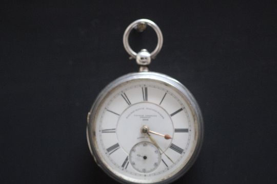 A HALLMARKED OPEN FACED MANUAL WIND POCKET WATCH, enamel dial stamped 'railway manufacturer - Thomas Wheeler, Preston' Dia 5.25 cm