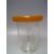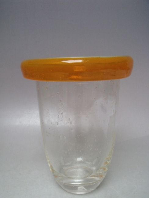 TWO STUDIO ART GLASS VASES, to include an unusual clear glass bodied vase with bubble inclusion, having citrus orange glass fold over collar to top edge, H 17.5 cm, tallest H 33.5 cm (2)