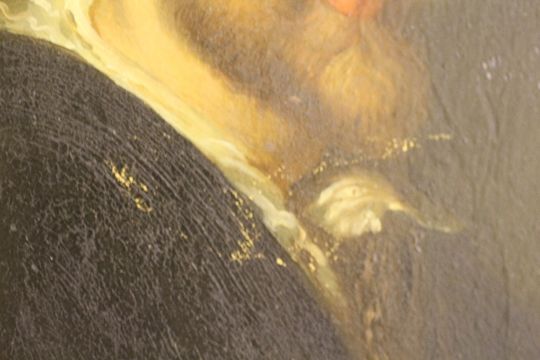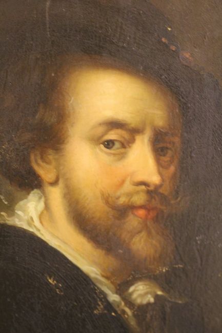 (XIX). After Rubens, a 19th century oval head and shoulder portrait study of a bearded man wearing a hat, unsigned, oil on board, framed, 21 x 17 cm