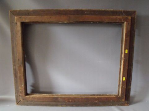 A 19TH CENTURY DECORATIVE GOLD FRAME WITH CORNER EMBELLISHMENTS, frame W 9 cm, frame rebate 72 x 55 cm