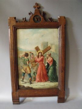 (XIX). Study of one of the Stations of the Cross. wooden frame with carving to the top, unsigned, oil on canvas laid on card, framed 35 x 24 cm