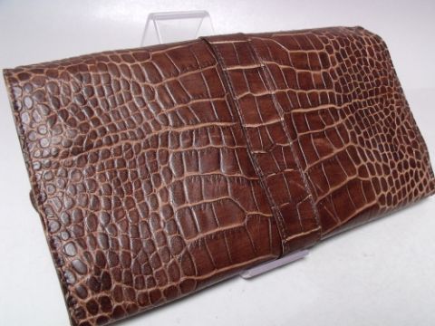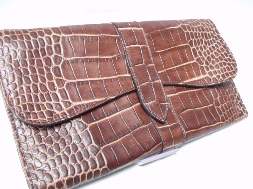 A SMYTHSON OF BOND STREET 'MARA' CROC EFFECT LEATHER JEWELLERY ROLL, W 23 cm, with press stud closure