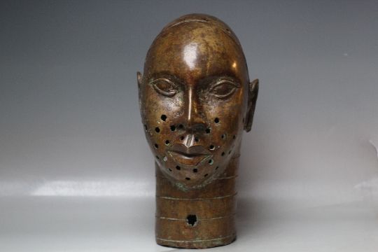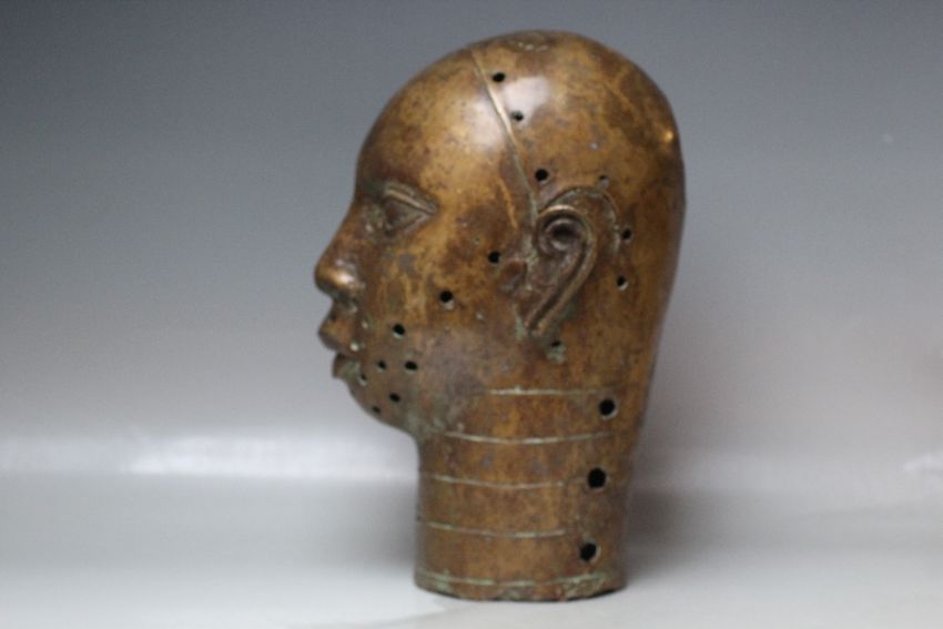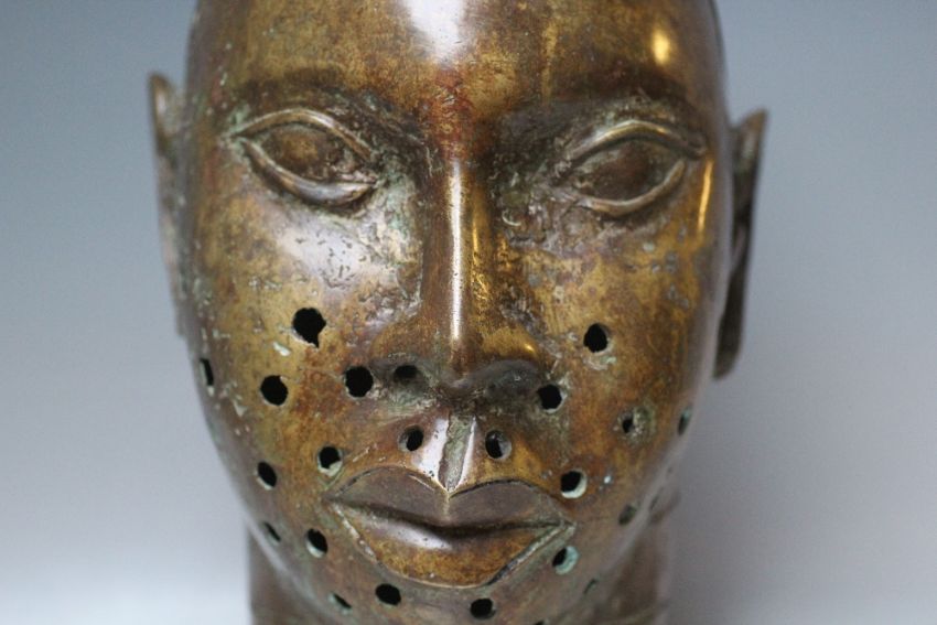 VINTAGE BRONZE BENIN HEAD, H 42 cm