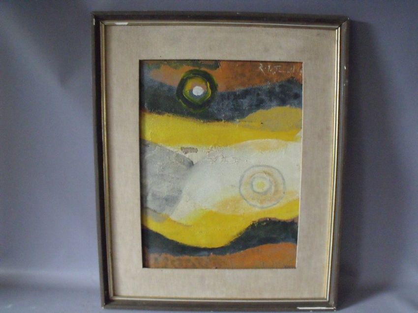 R.M. TH?? (XX). Abstract composition, signed and indistinctly dated upper right, oil on board, framed, 41 x 31 cm