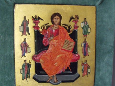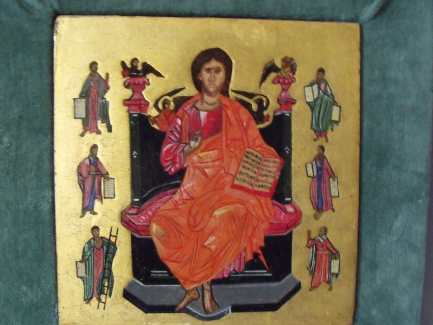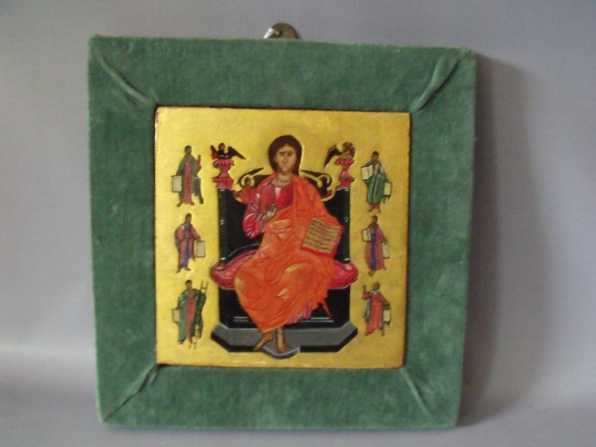 (XX-XXI). Religious icon studies of various Saints, unsigned, mixed media on panel, set in a covered slip, 18 x 17 cm