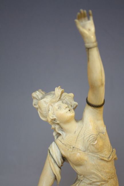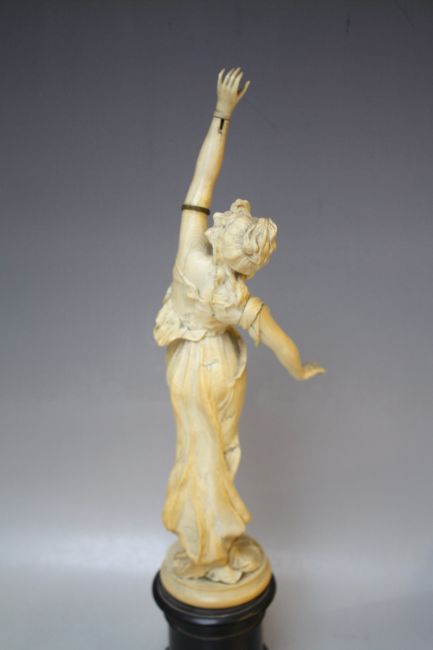 A 19TH CENTURY CARVED IVORY STUDY OF A CLASSICAL MAIDEN, on an ebonised socle plinth, overall H 42 cm