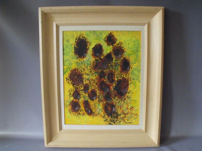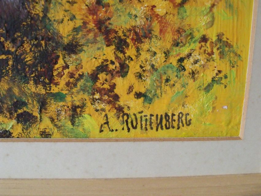 A. ROTTENBERG (XX). Continental school, impressionist flower study of sunflowers, signed lower right, oil on board, framed, 47 x 38 cm