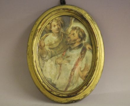 (XVIII-XIX). Oval religious study of two figures, unsigned, watercolour, framed and glazed, 16 x 11 cm