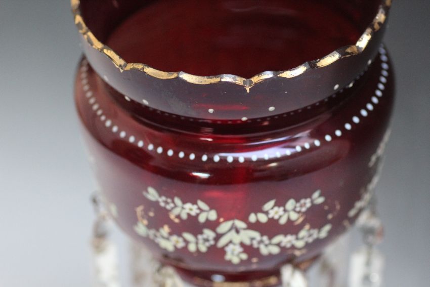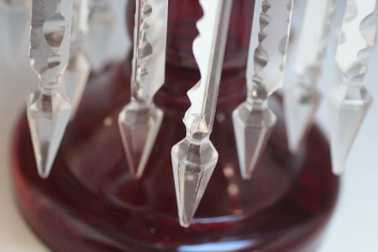 A LARGE RUBY GLASS LUSTRE, H 37 cm