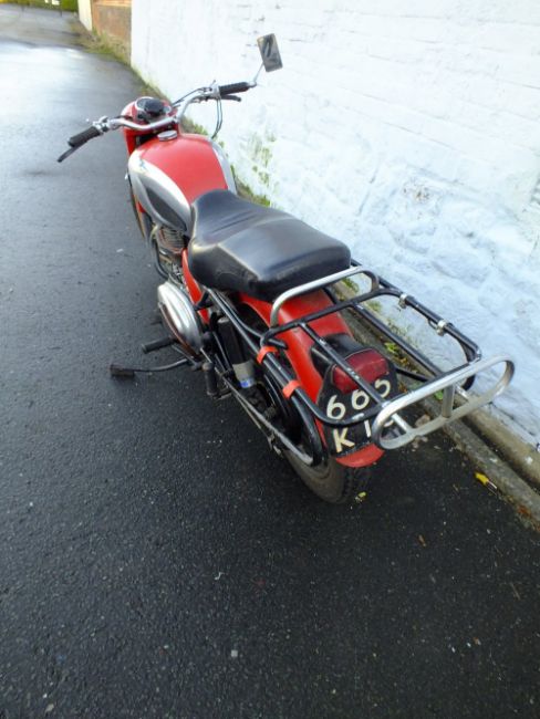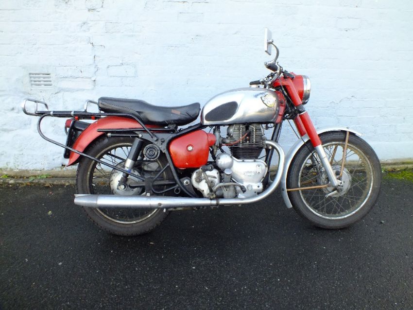 A 1960 ROYAL ENFIELD CONSTELLATION HISTORIC MOTORCYCLE '665 KTU', having red coachwork and chrome petrol tank, the 692cc air-cooled OHV parallel twin engine with number 10332, odometer reads 57252 miles.Date of first registration UK 13/04/1960Number of previous owners according to V5C is NONEDocumentation comprises an ORIGINAL registration book with stamps from 13 April 1960 onwards, cancelled V5, V5C Detailing Vehicle Identification Number 9650Engine No 10332Four MOT Certificatesfrom the 1990'sTwo Royal Enfield Owners Club membership cards and a related BMF cardA congratulatory Royal Endfield Owners Club '40 continuous years' letter**PLEASE NOTE** viewing strictly by appointment only. Video calls are also possible, please contact us for further details. This bike and has been dry garage stored for sometime and as a result it will need careful re-commissioning and safety checks prior to use on the road by a new owner. As with all every lot in our auctions, this motorcycle is very much 'sold as seen' and all bidders must satisfy themselves as to the condition, age, completeness and originality etc BEFORE bidding.