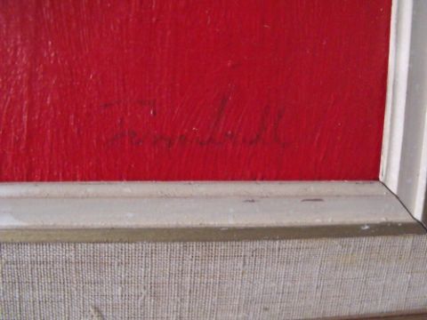 (XX). Abstract composition, indistinctly signed lower right, oil on board, framed, 75 x 49 cm