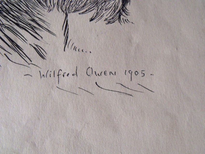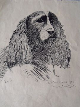 SCHOOL OF WILFRED OWEN (1893-1918). Study of a Spaniel, bears signature and date 1905 lower right, pen and ink on paper, unframed, 28 x 22 cm
