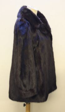 A LADIES VINTAGE RICH MAHOGANY BROWN MINK FUR JACKET, fully lined, side packets and hook fastening