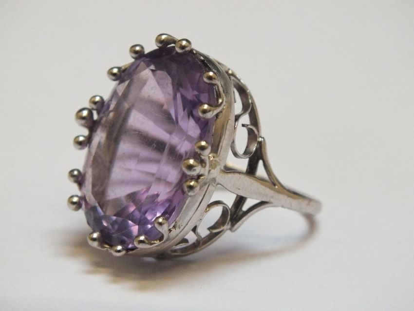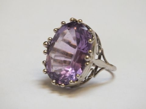 AN 18CT WHITE GOLD AMETHYST RING, approx weight 7.9g, ring size J 1/2