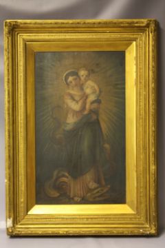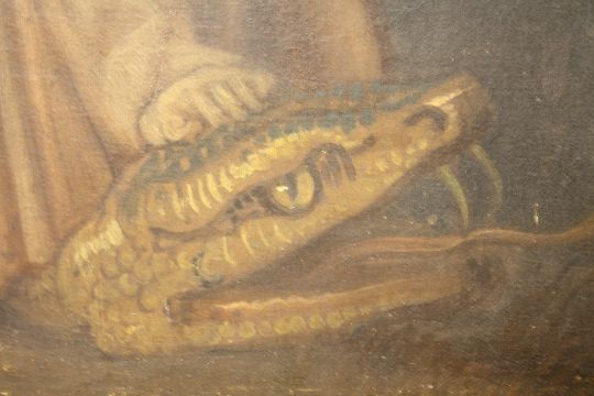 (XVIII). Continental school, study of a Mother and child, the Mother's foot standing on the head of a serpent, unsigned, oil on canvas, framed, 75 x 44 cm