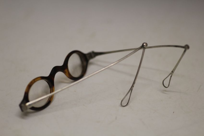 A PAIR OF CONTINENTAL HALLMARKED SILVER AND TORTOISESHELL SPECTACLES IN A SHAGREEN CASE, L 13.5 cm