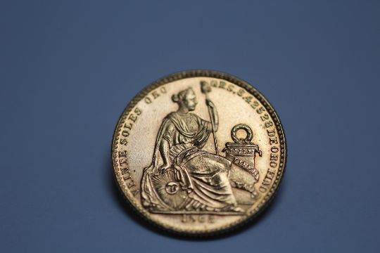 A 1968 LIMA MINT PERUVIAN 50 SOL GOLD COIN, approximately 9.3 g