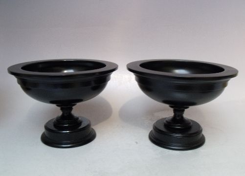 DAVID LINLEY OF LONDON - A PAIR OF SMALL TURNED EBONY FOOTED BOWL, H 15 cm, Dia. 10.5 cm (2)