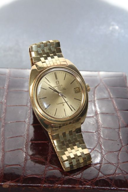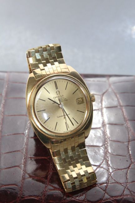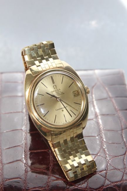 AN 18 CT GOLD OMEGA CONSTELLATION AUTOMATIC WRIST WATCH, coming with both inner and outer box, approx weight 124g, Dia 3.5 cm