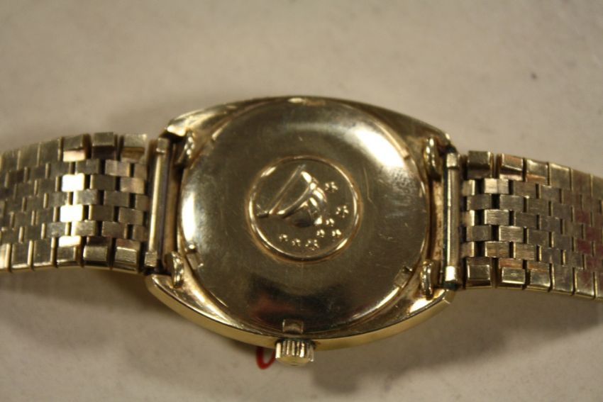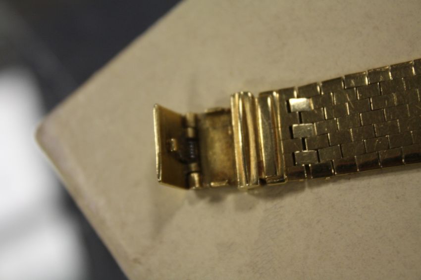 Condition Report:Gents watch and strap is stamped '750' by the clasp. Some light scratching to case back and edge. No obvious scratching to glass. Currently ticks but we are unable to offer any guarantee as to the working capacity of any timepiece. Hand and date setting ok, no dents to the case rims just light scratching but nothing substantial. clasp with log fully working, light scratching but nothing substantial There is no engraving to the reverse.