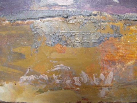 (XX). Impressionist composition, indistinctly signed lower left, oil on board, framed, 16 x 31 cm