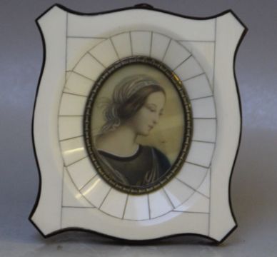 (XX). An oval portrait miniature on ivorine of a young woman, indistinctly signed middle right, framed and glazed, 7 x 5 cm