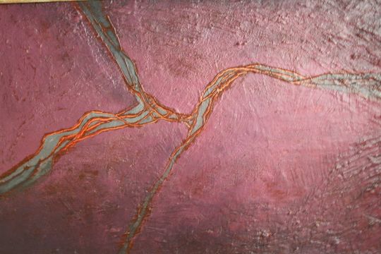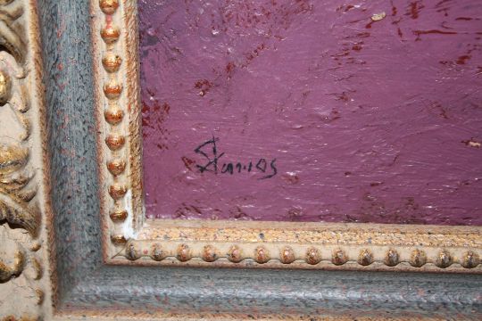 (XX.) Abstract composition, indistinctly signed lower left, oil on board, framed, 67 x 42 cm
