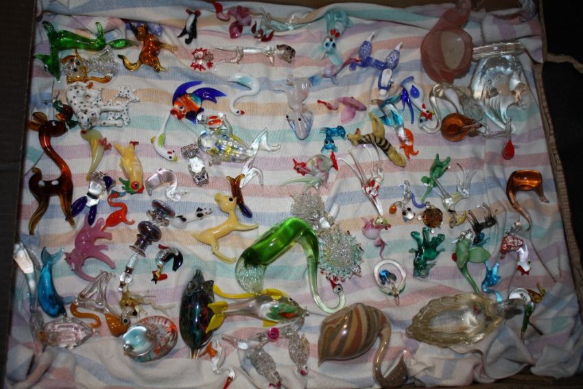 A TRAY OF STUDIO GLASS ANIMAL FIGURES