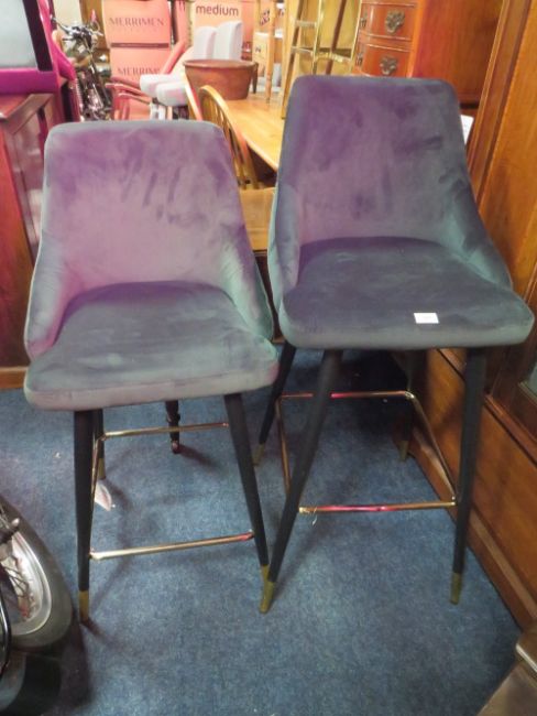 A PAIR OF MODERN 'FOREST GREEN' UPHOLSTERED BAR STOOLS - DIFFERENT HEIGHTS
