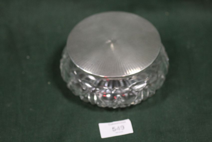 A HALLMARKED SILVER LARGE CUT GLASS VANITY JAR