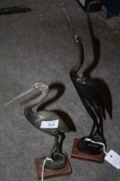 A PAIR OF BUFFALO HORN STORK FIGURES