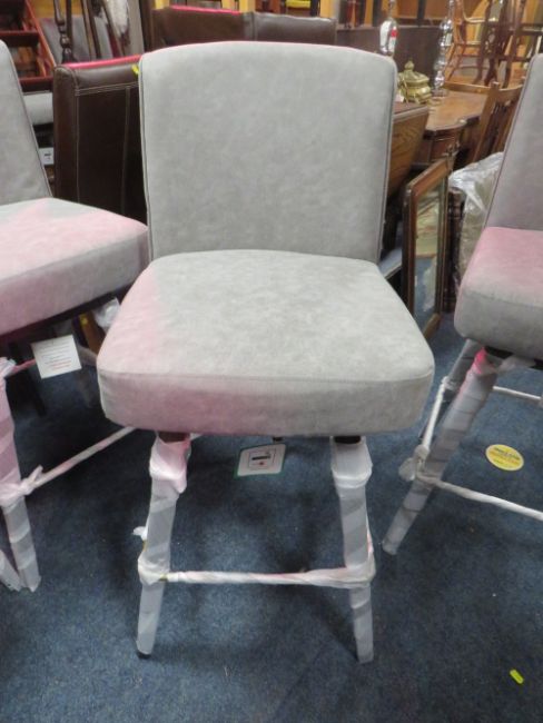 A SET OF FOUR MODERN UPHOLSTERED SWIVEL BAR STOOLS