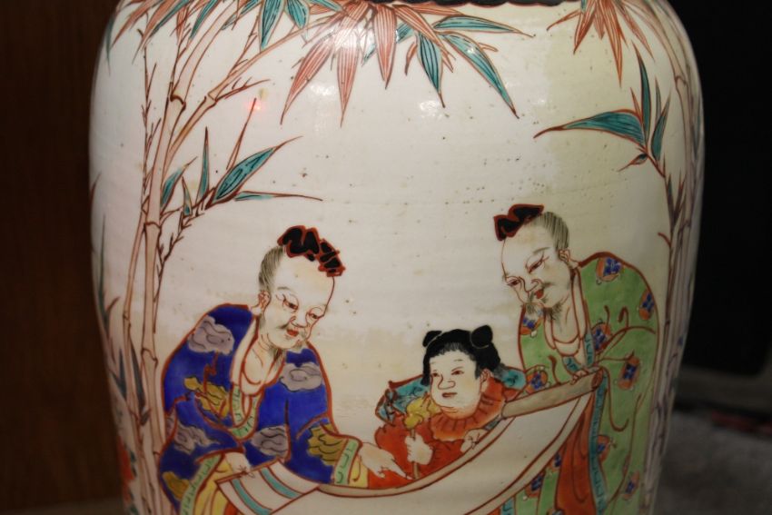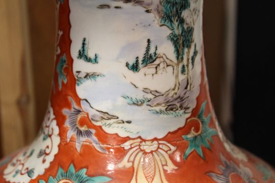 A LARGE CHINESE FRILL TOPPED VASE, decorated with typical scenes, H 64 cm