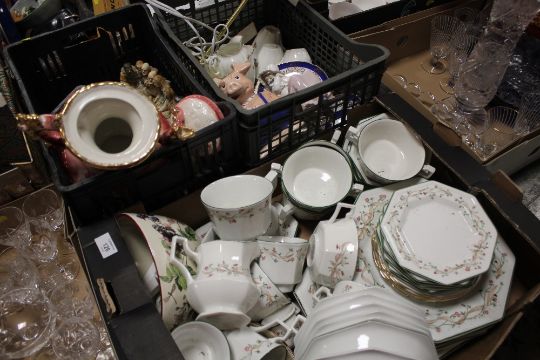 A TRAY OF ETERNAL BOW CHINA TOGETHER WITH TWO TRAYS OF ASSORTED CERAMICS TO INCLUDE WADE AND NAO EXAMPLES (3)