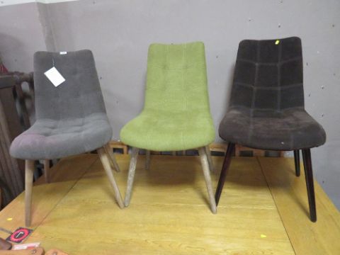 A SET OF THREE HARLEQUIN UPHOLSTERED DINING CHAIRS