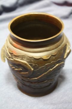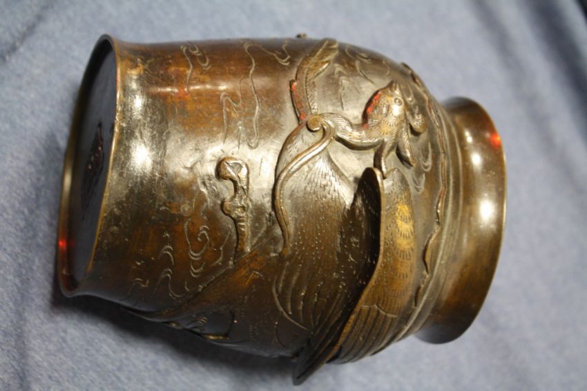 AN ORIENTAL BRONZE STYLE VASE DECORATED WITH BIRDS, WITH CHARACTER MARKINGS TO BASE