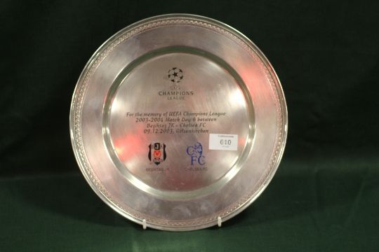 A UEFA CHAMPIONS LEAGUE 900 SILVER COMMEMORATIVE PLATE FOR CHELSEA FC AND BESIKTAS JK
