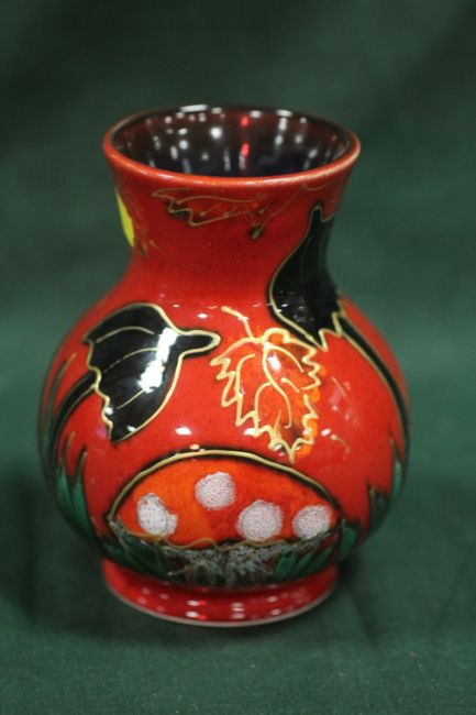 A SIGNED ANITA HARRIS ART POTTERY MUSHROOM PATTERN VASE