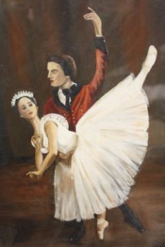 A FRAMED AND GLAZED OIL PAINTING OF BALLET DANCERS