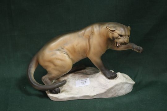 A BESWICK MATTE FINISH FIGURE OF A PUMA ON A ROCK