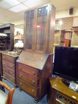 A VINTAGE OAK BUREAU BOOKCASE H-194 CM W-74 CM